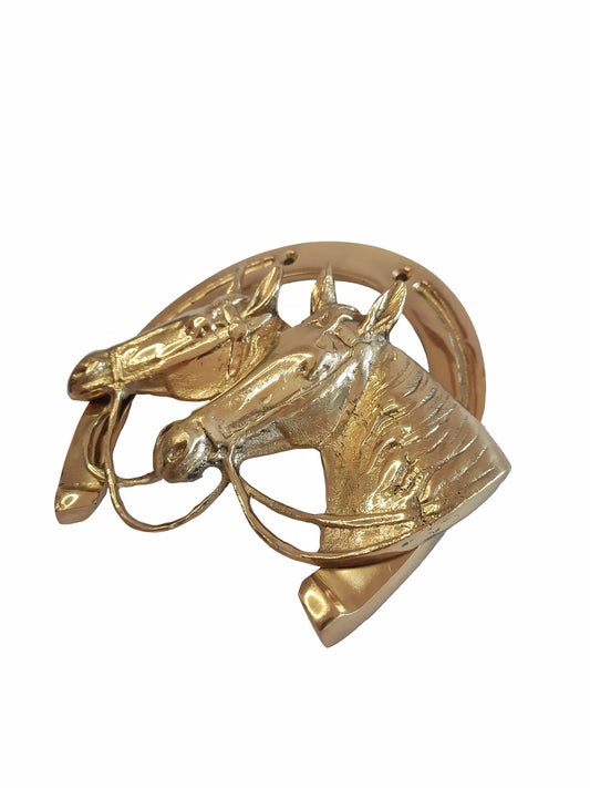 Vintage Brass Horse Head Double Hook - Gold Mirror Finish