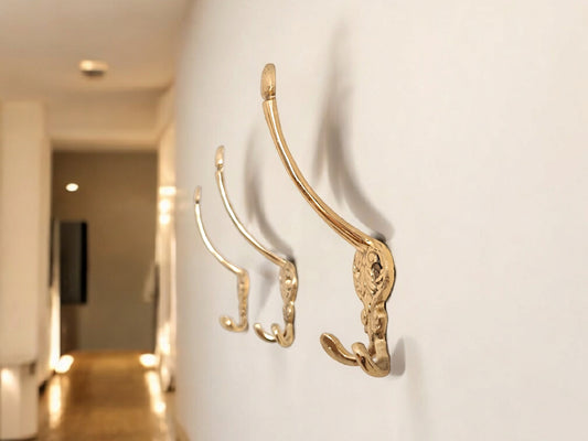 Vintage Brass Hooks Set, Mirror Gold Finish, 3-in-1 Hanging Solution