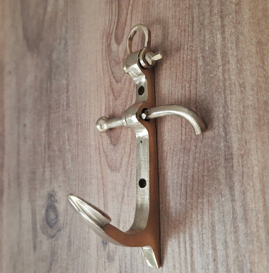 Brass Hanging Hooks, Cast Brass Anchor Shaped Coat Hooks
