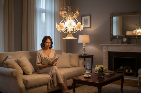 Vintage Glass Floral Chandelier, 90s Floral Ceiling Pendant Lamp