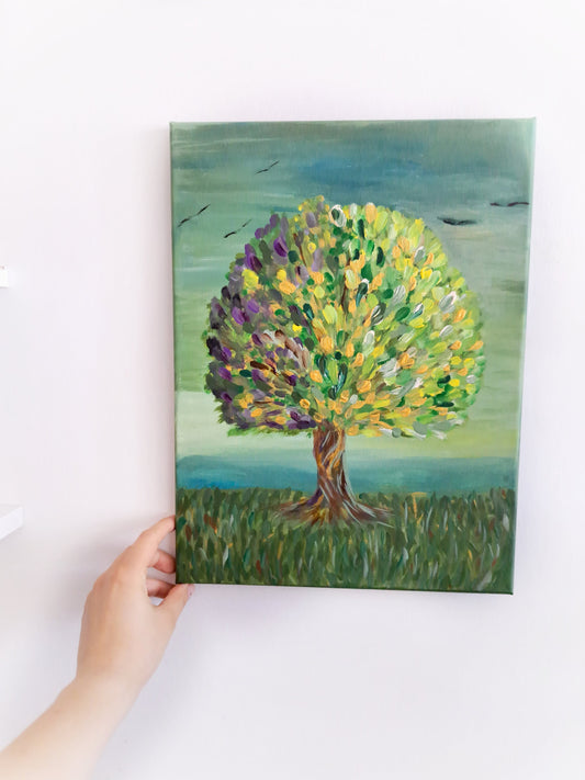 Original Acrylic Oil Painting on Canvas – Tree of Life Landscape Art